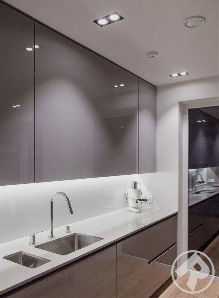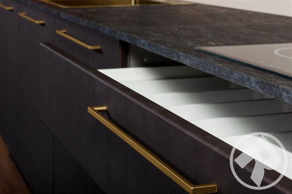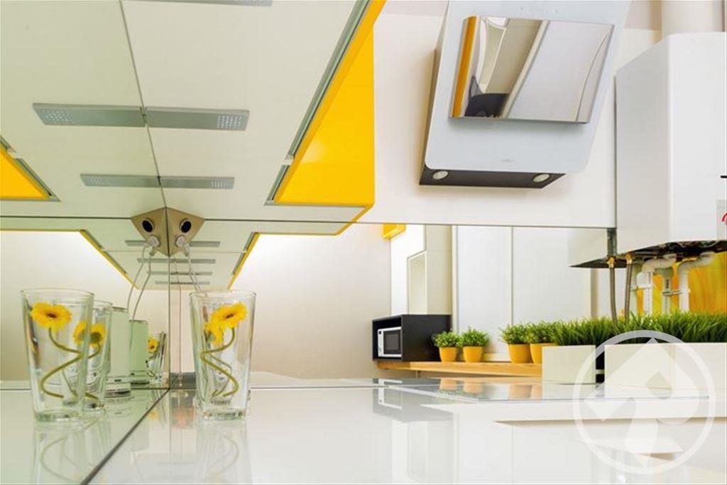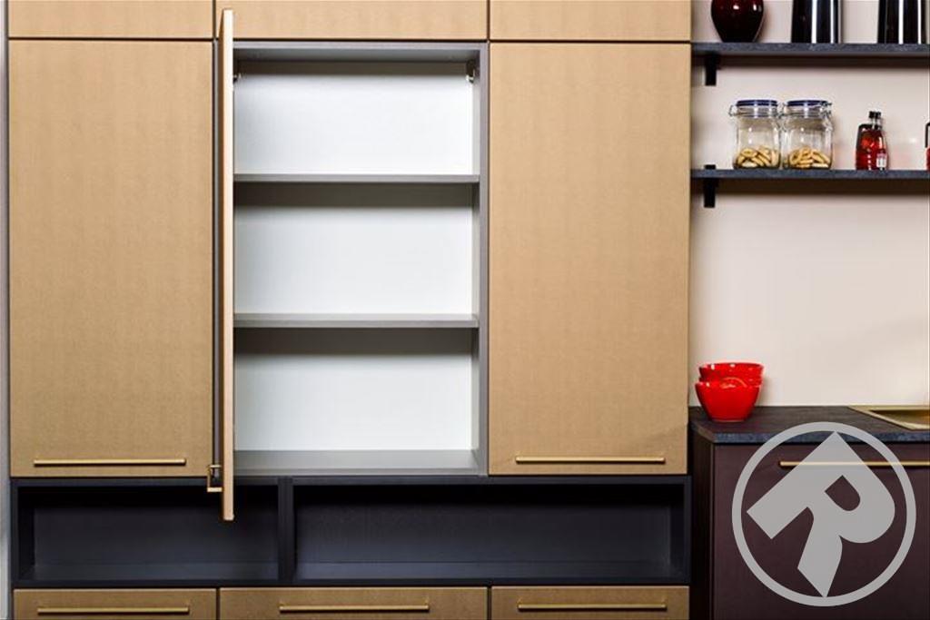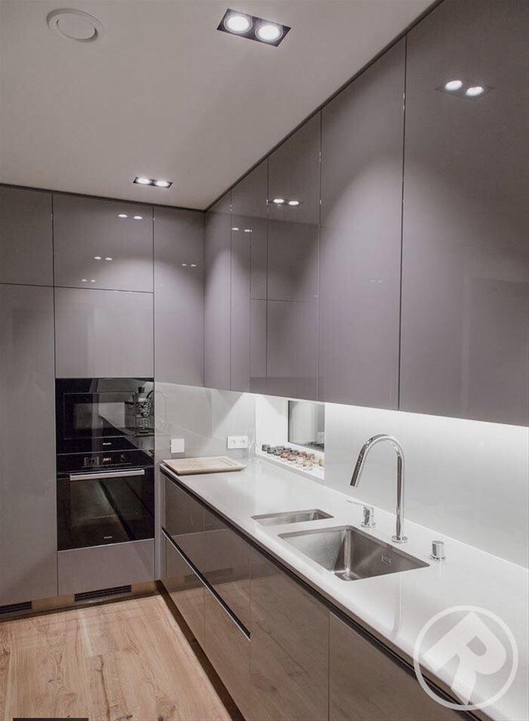 Четкая геометрия дизайна кухни, укомплектованность удлиненными ручками, присутствие только одного цвета - дает ощущение значительно большего пространства. Закрытые вместительные ящики и полки позволяют убрать с глаз лишнюю утварь и скрыть разнообразную кухонную технику, что важно людям желающим хранить чистоту и порядок.