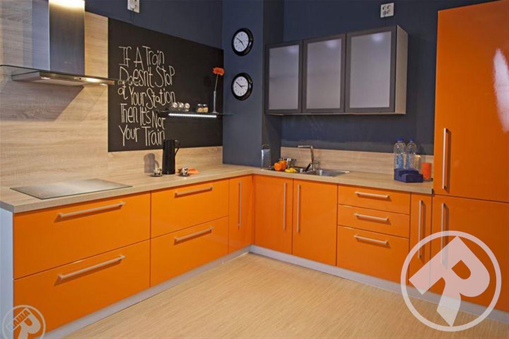 Восхитительный, солнечно-оранжевый кухонный гарнитур «Марго» идеально подойдет, чтобы сделать яркий, неординарный и бодрящий дизайн кухни. Сочная насыщенность цвета тут разбавлена простотой линий. Здесь минимализм встречается с современностью, принося функциональность и простор для действий.