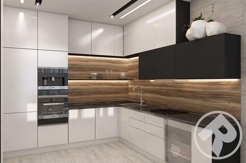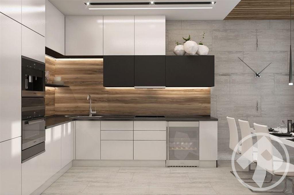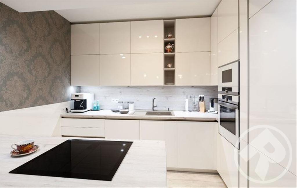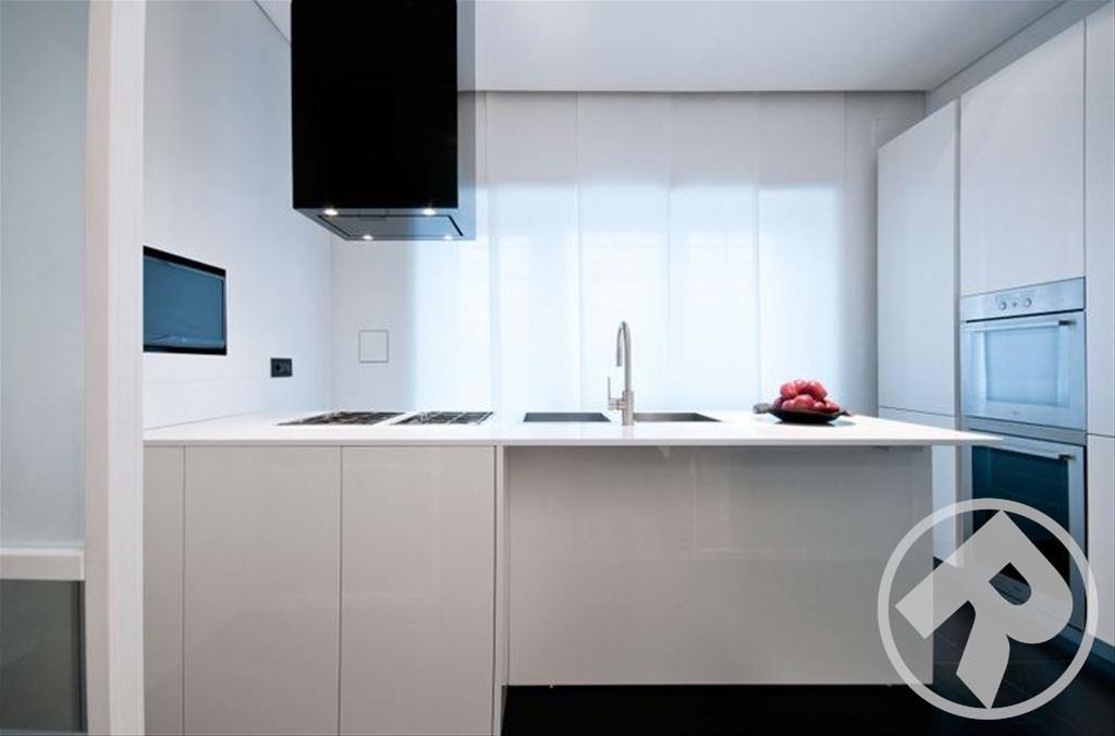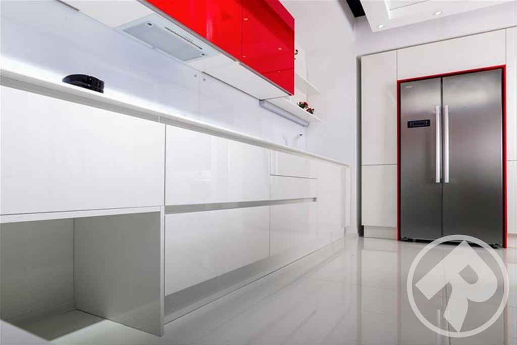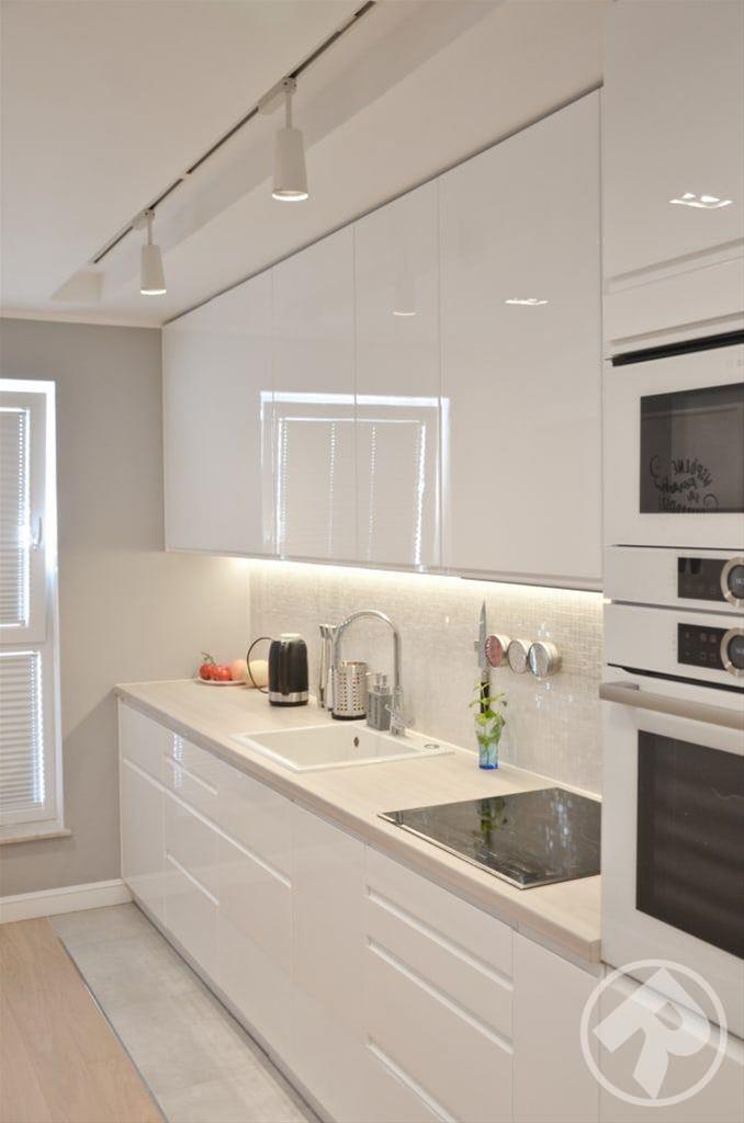 Эти великолепные глянцевые фасады, выполнены в минималистском ключе в соответствии с современным стремлением «спрятать» кухню. При этом специальное покрытие позволяет не бояться за безукоризненную внешность – финишная отделка фасадов защищает их поверхность так, что на ней не остается следов от пальцев. Удобно и позволяет любоваться идеальным блеском без трудоемкого ухода.