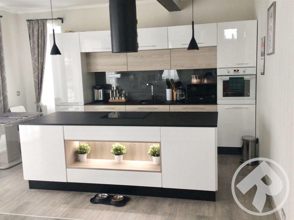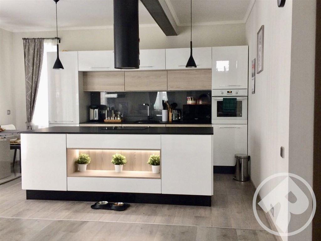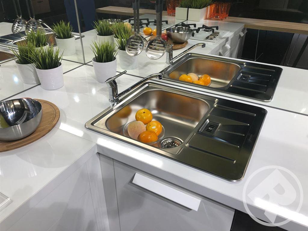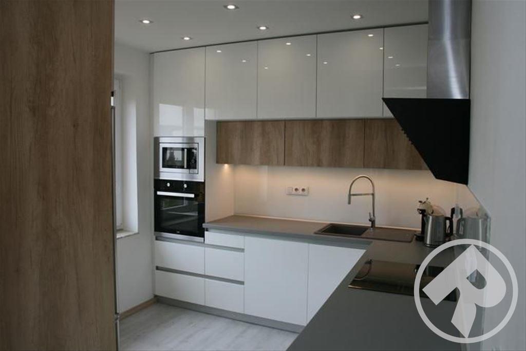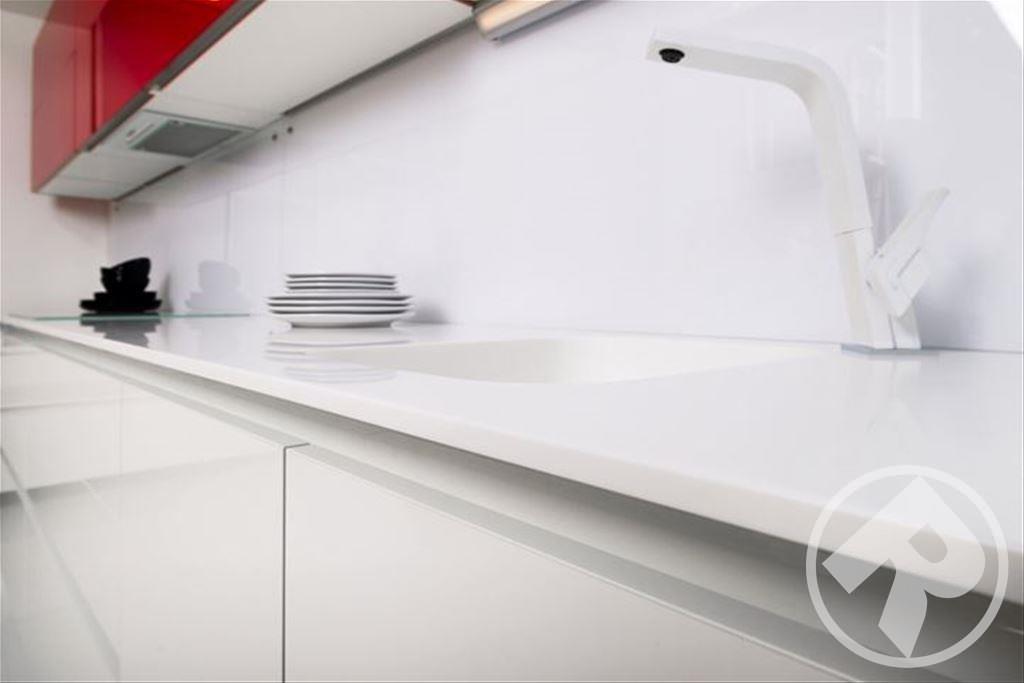 Эти великолепные глянцевые фасады, выполнены в минималистском ключе в соответствии с современным стремлением «спрятать» кухню. При этом специальное покрытие позволяет не бояться за безукоризненную внешность – финишная отделка фасадов защищает их поверхность так, что на ней не остается следов от пальцев. Удобно и позволяет любоваться идеальным блеском без трудоемкого ухода.