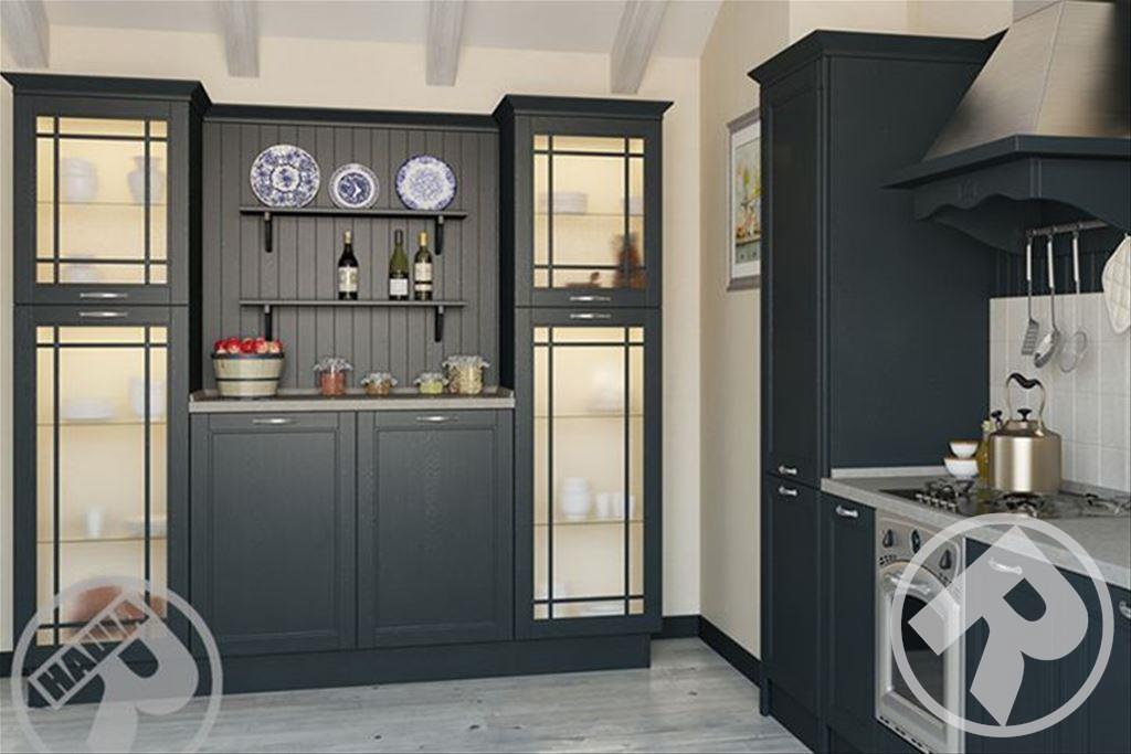Материал фасада: массив ясеня, отделка окрашивание трех цветов: Бьянко, Гриджио, Антрацит.